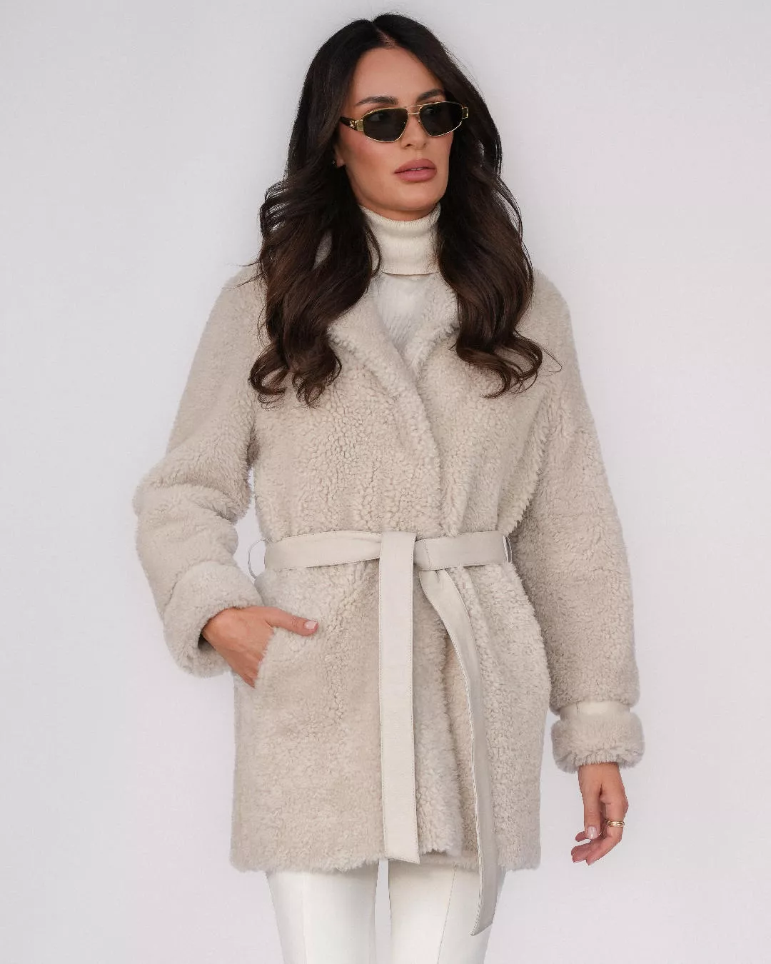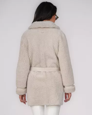 Double-sided ivory sheepskin coat