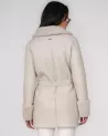 This elegant and timeless women's reversible sheepskin coat in ivory combines a luxurious look with functionality. Crafted entirely from 100% genuine merino leather, it provides excellent thermal insulation, softness, and comfort on colder days.