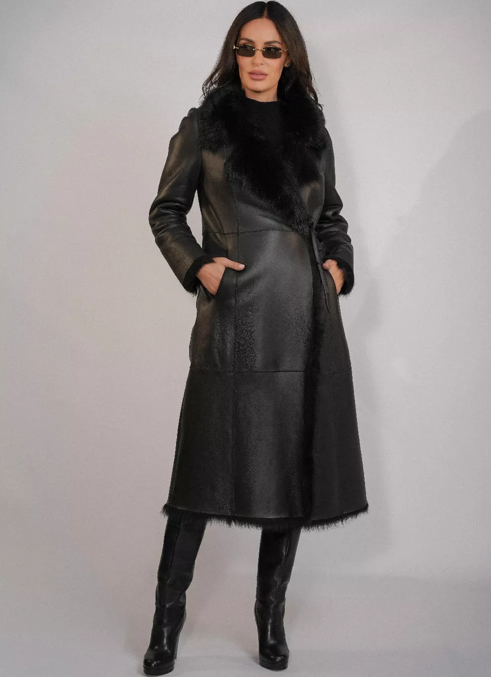 This elegant, timeless, reversible sheepskin coat is made of the highest quality Toscana leather (100% Spanish lamb). It combines luxurious appearance with functionality – you can wear it with the leather side facing out or with the soft, fur trim, adapting your style to any occasion.