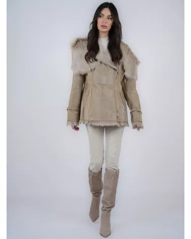 A stylish, warm, and durable sheepskin coat perfect for both everyday wear and more elegant occasions.