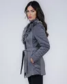 The coat fastens with practical snaps and features two welt pockets, perfect for small items or warming your hands. At 75 cm long, the coat provides effective protection against the cold while maintaining a lightweight and elegant silhouette.