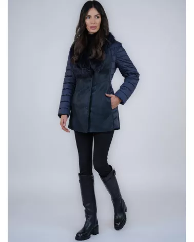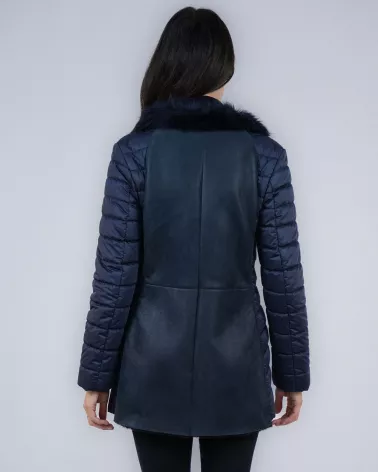 An elegant and functional women's navy sheepskin coat that combines a classic silhouette with modern details. The fitted cut beautifully accentuates the silhouette, and the included full-grain leather belt allows you to adjust the coat to your figure and style. The luxurious collar trimmed with natural fox fur adds a unique touch and provides warmth on cold days.