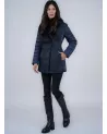 The sleeves and sides are made of quilted textile, creating a lightweight look and increasing comfort. Additional down insulation on the sleeves guarantees protection from the cold, even in low temperatures. The model fastens with snaps and features two practical welt pockets. At 75 cm long, the coat is perfect for both everyday styling and more elegant ensembles.