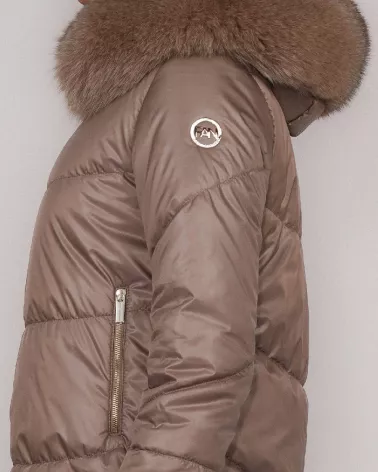 This elegant, lightweight down jacket in a timeless beige color is perfect for cooler days, combining an exclusive look with high functionality. This 85 cm model features a slightly longer back, providing additional protection from the cold and giving the jacket a modern silhouette.