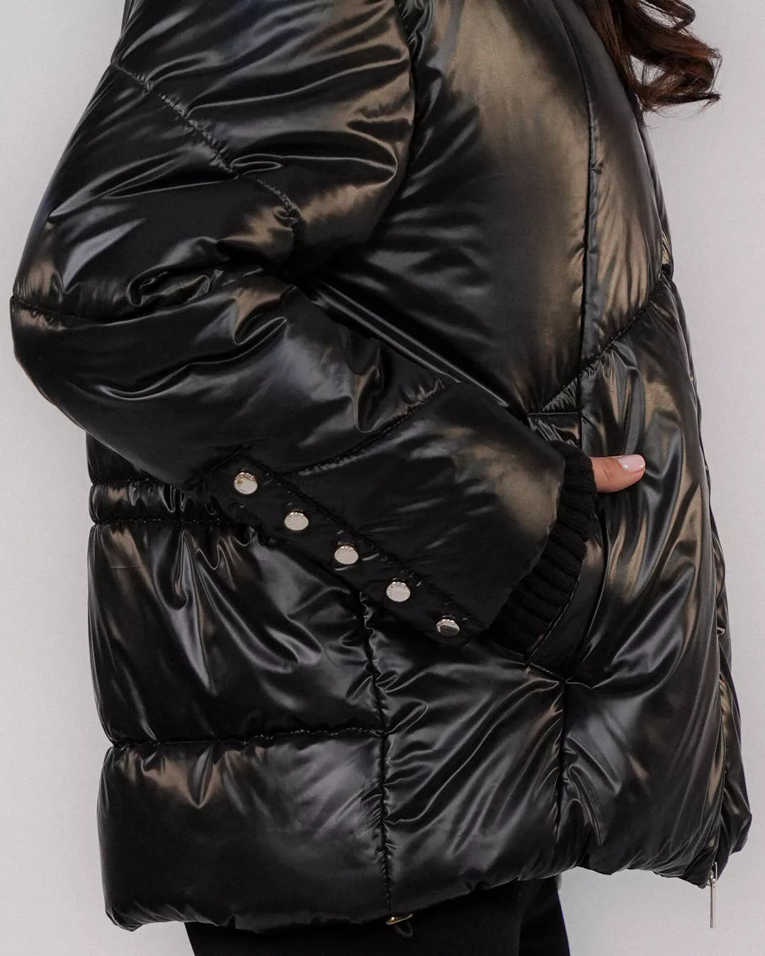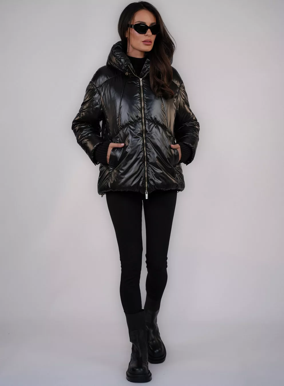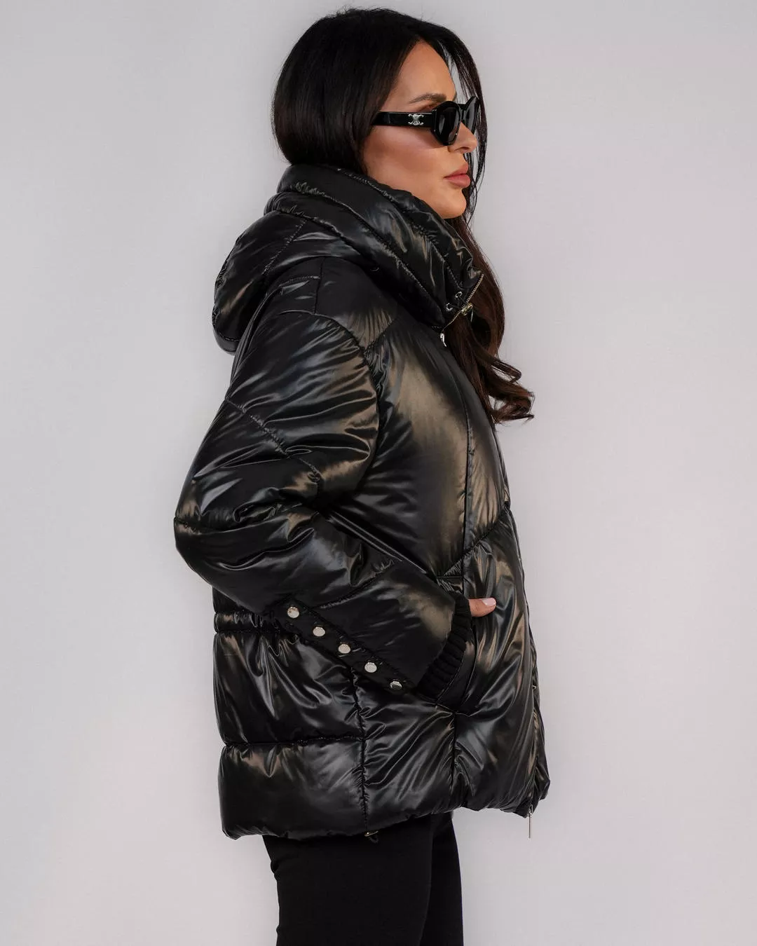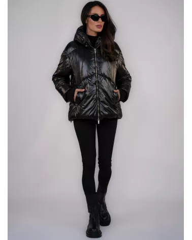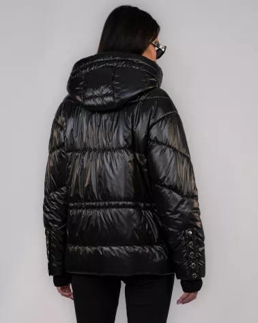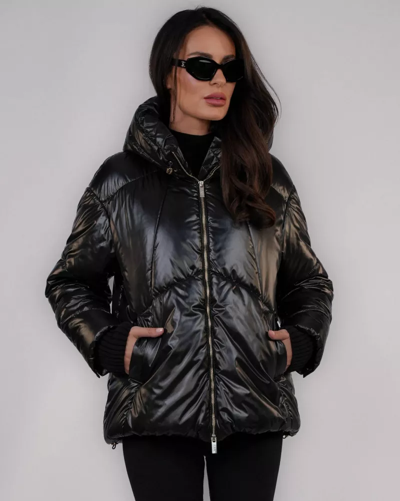 Black down jacket with a hood