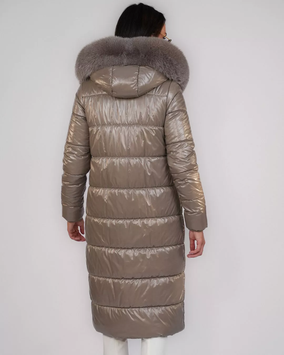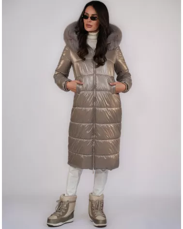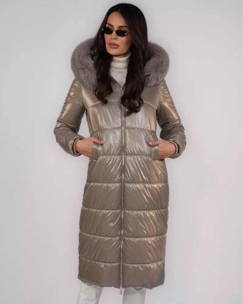 Taupe hooded down jacket