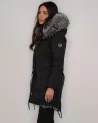 This luxurious, reversible women's parka, made of the highest quality materials, is the perfect choice for cold winter days. This black model, 95 cm long, features a fashionable oversized cut that allows for complete freedom of movement and an exceptionally comfortable fit.