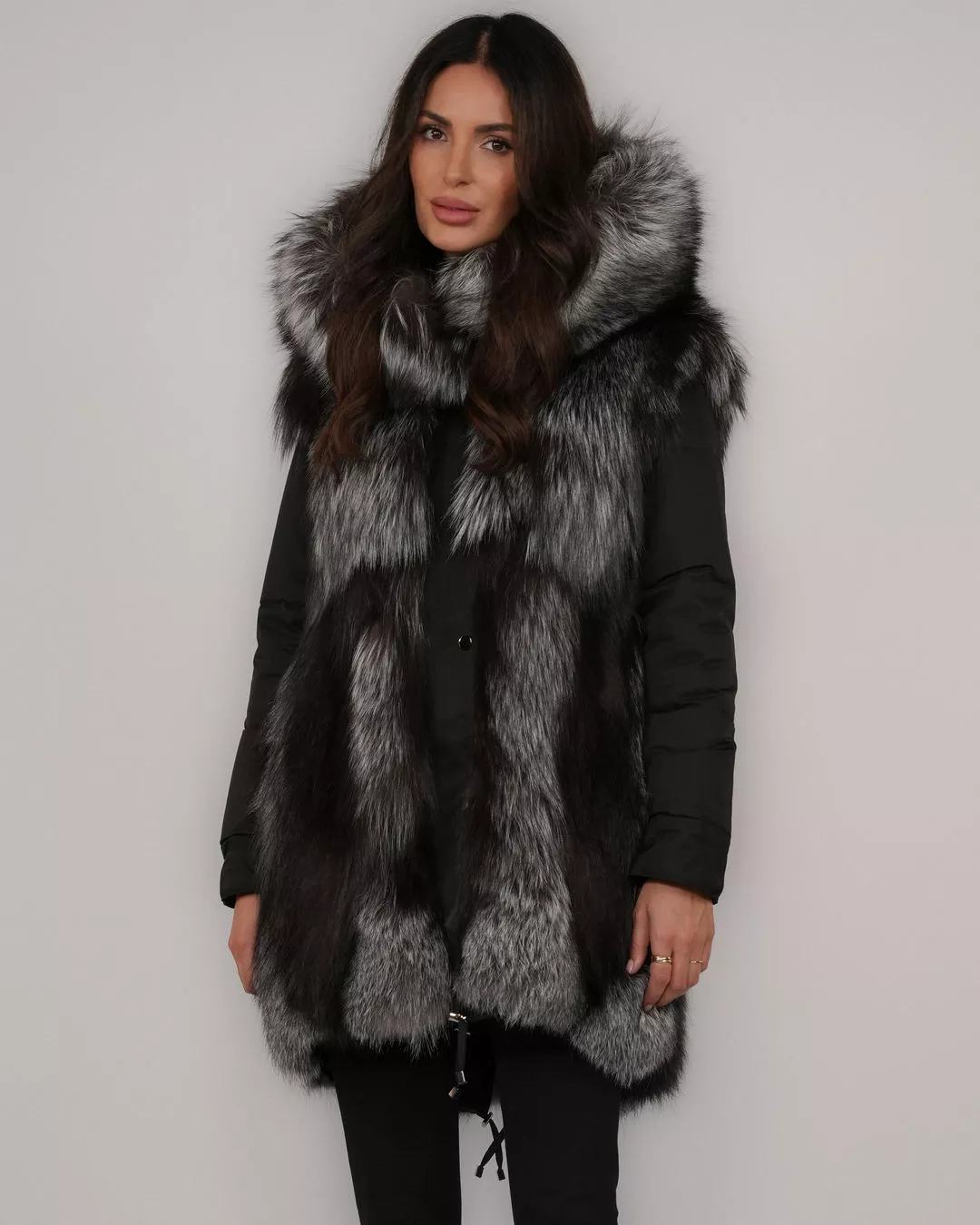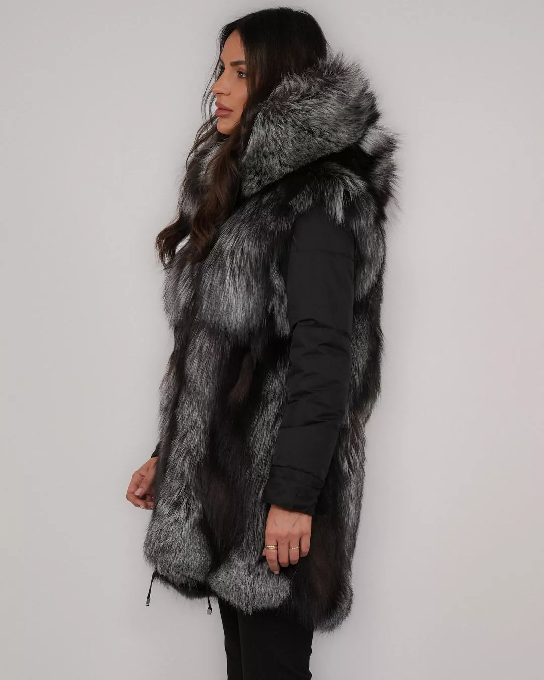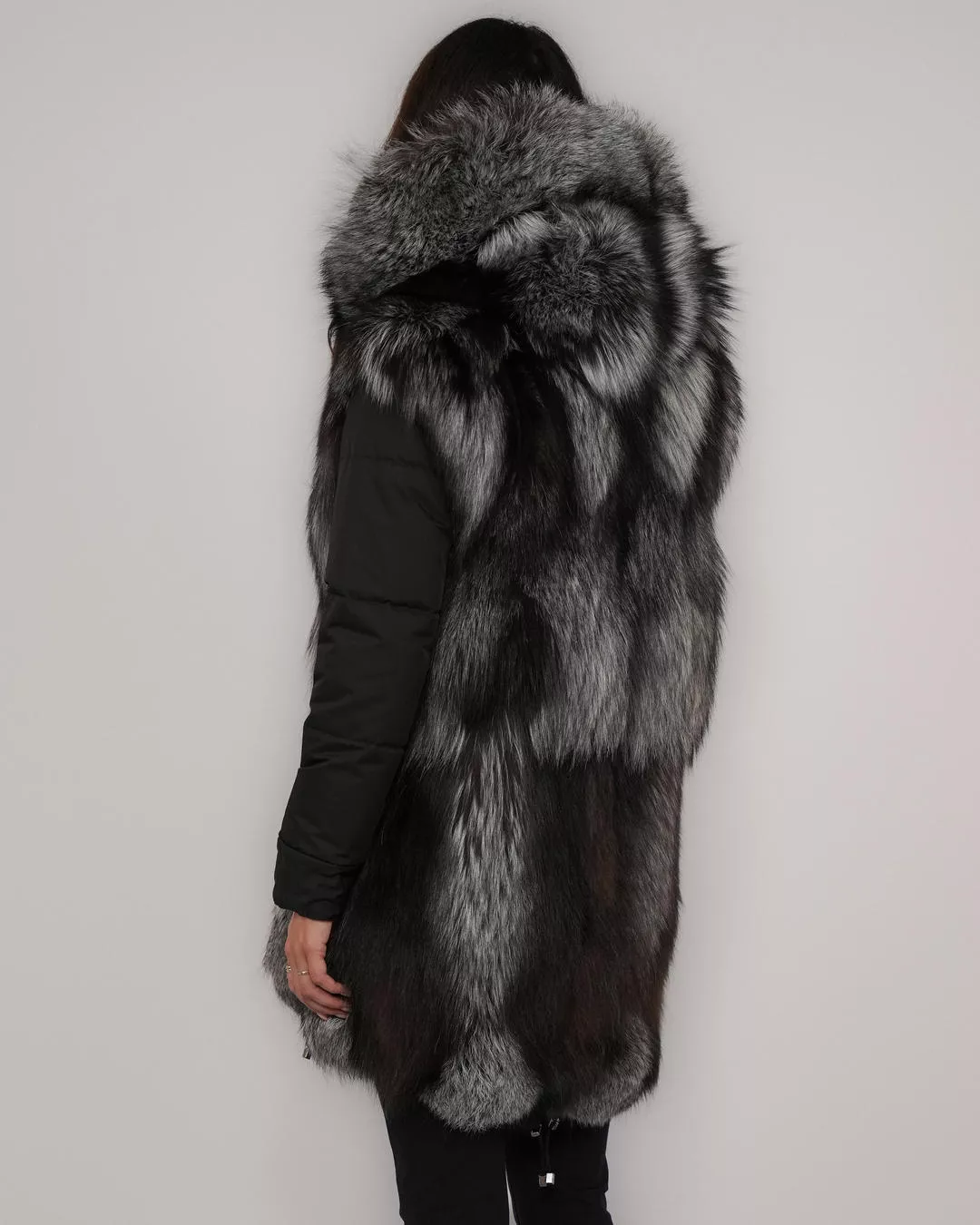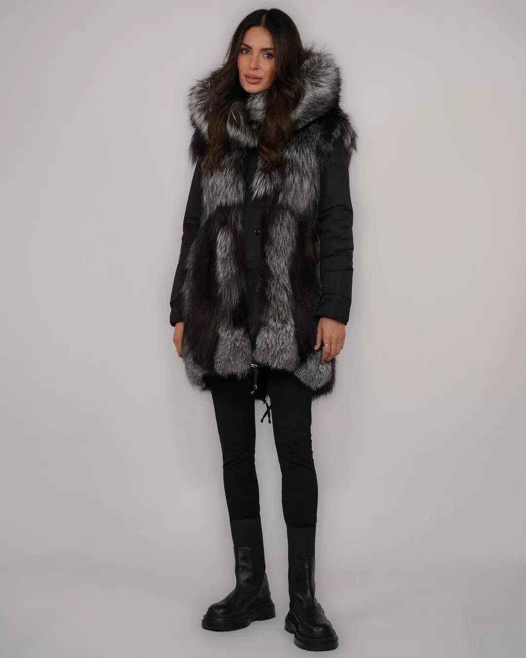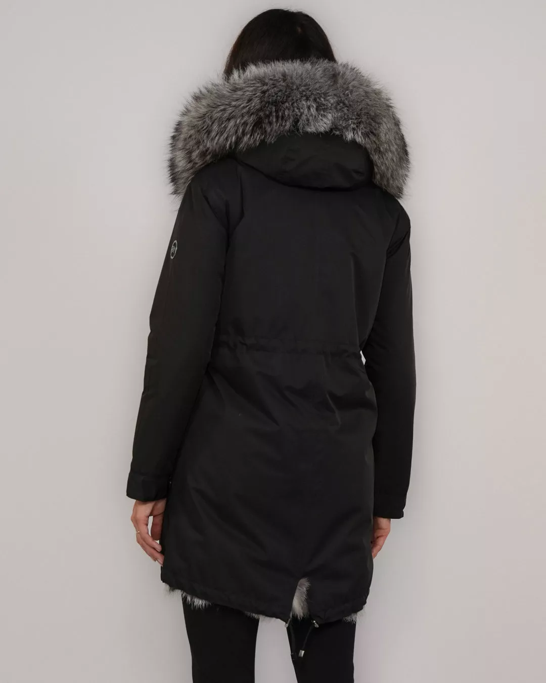 Women's Reversible Parka with Natural Silver Fox Fur – Black