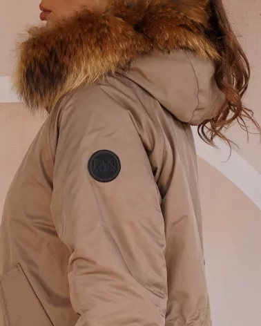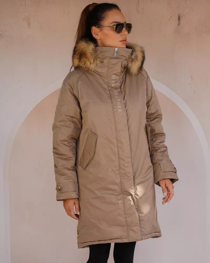 Hood with natural raccoon fur – adds a luxurious touch and additional protection against the cold.