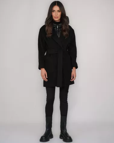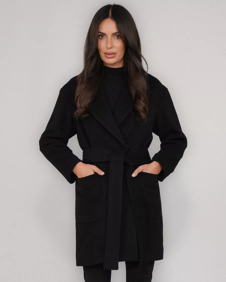 The classic black color and approximately 90 cm length make this coat a perfect complement to both elegant and casual outfits.