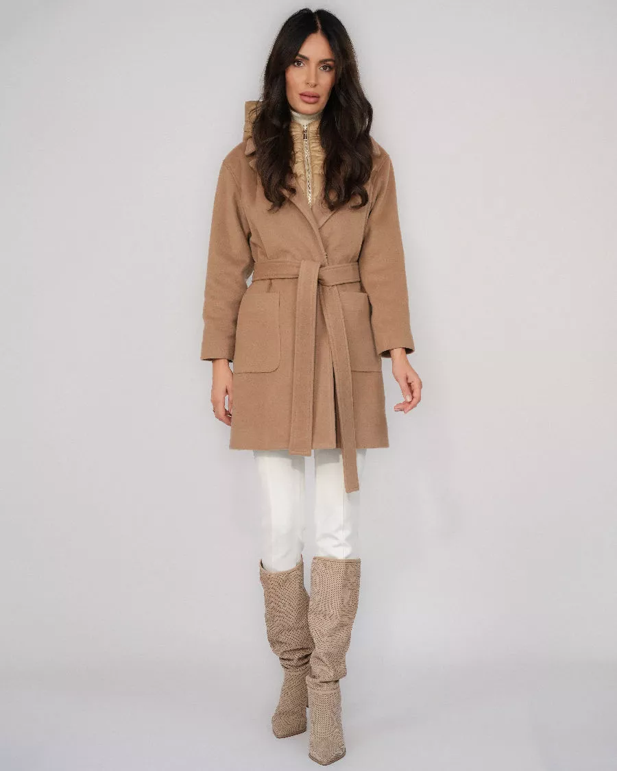 This stylish and timeless camel coat is the perfect choice for women who value elegance and comfort. Made from a high-quality wool and cashmere blend, it provides thermal comfort, softness, and a perfect fit.