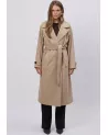 The sleeves are adorned with buttoned straps, giving the coat a subtle elegance. The coat also features two convenient side pockets.