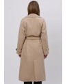 The sleeves are adorned with buttoned straps, giving the coat a subtle elegance. The coat also features two convenient side pockets.