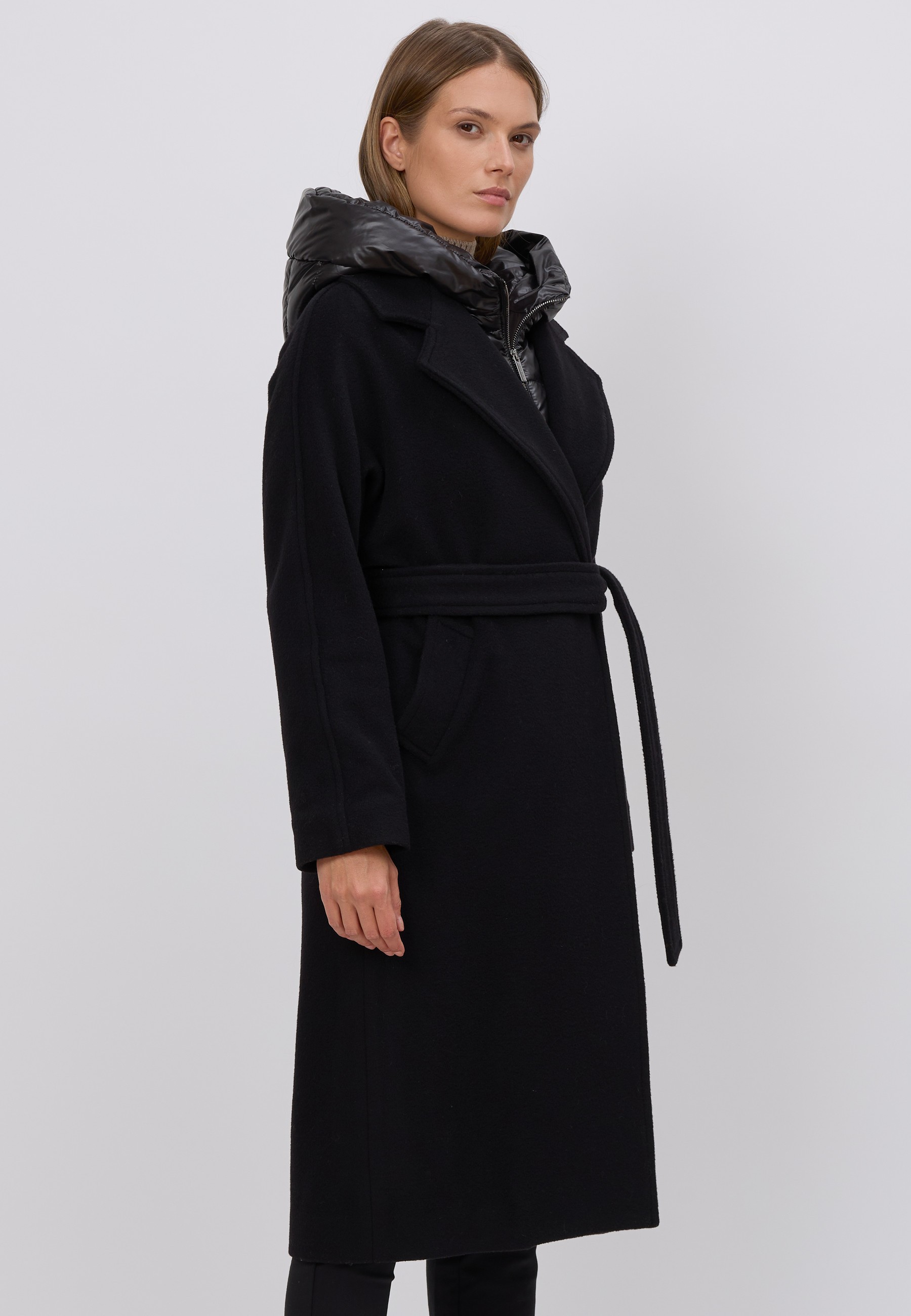 Black Wool Coat with Cashmere and a Detachable Hooded Liner