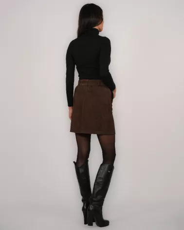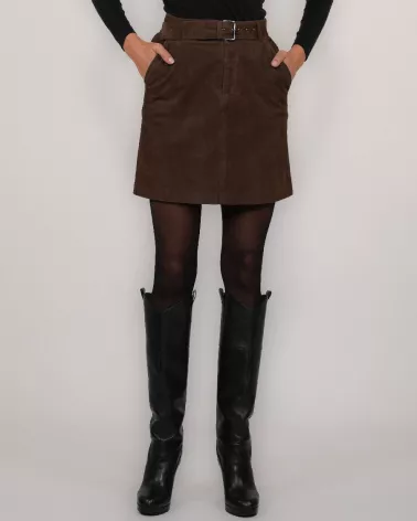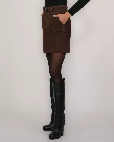 Dieser elegante, zeitlose Rock ist aus 100 % weichem Lammveloursleder gefertigt. Sein klassischer Schnitt in Kombination mit der natürlichen braunen Farbe macht ihn zur perfekten Ergänzung sowohl für lässige als auch für elegante Outfits.