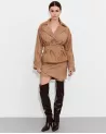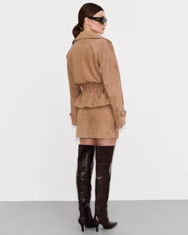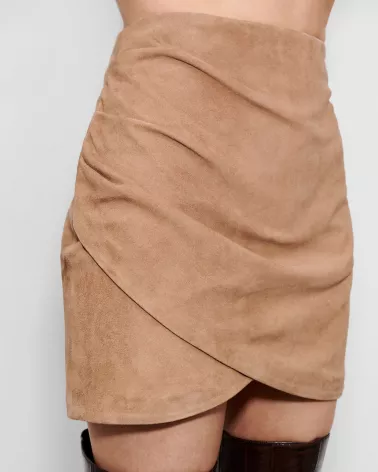 Betonen Sie Ihre Figur und verleihen Sie Ihrem Look mit diesem Wildleder-Minirock in elegantem Tabakbraun einen Hauch von Luxus. Das einzigartige Design vereint minimalistische Form mit femininen Details und bildet so eine zeitlose Basis für vielfältige Outfits.