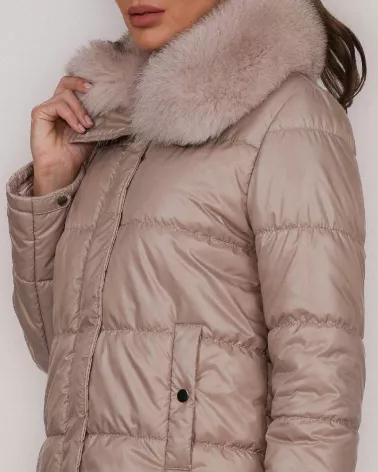 ● Kragen mit abnehmbarem, natürlichem Fuchsfellbesatz