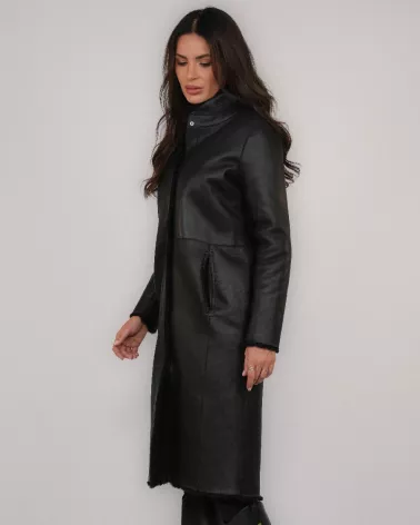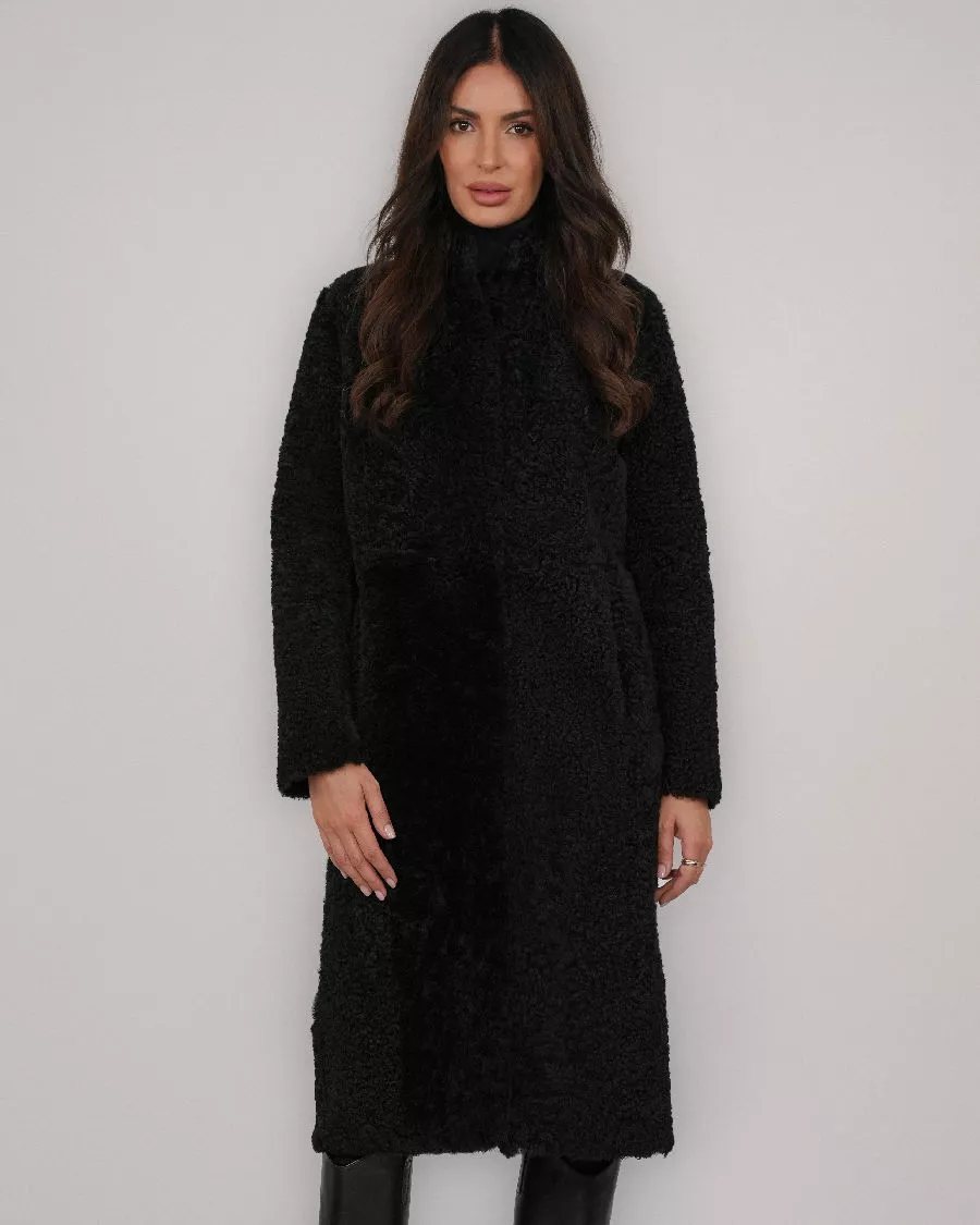 Wendbarer Merino-Lammfellmantel – Schwarz