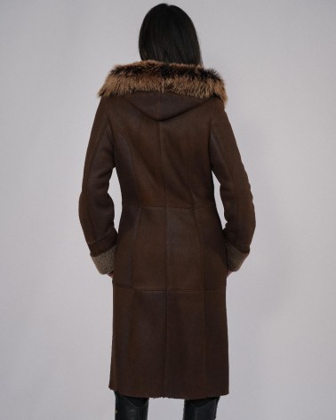 Dieses Modell verfügt über eine praktische Kapuze mit Naturfellbesatz, die dem Mantel eine stilvolle Note verleiht. Der Knopfverschluss betont die klassische Form des Mantels, während zwei funktionelle Taschen den Tragekomfort im Alltag erhöhen. Hochkrempelbare Ärmel ermöglichen eine individuelle Längenanpassung und bringen die weiche Oberfläche des Fells optimal zur Geltung.