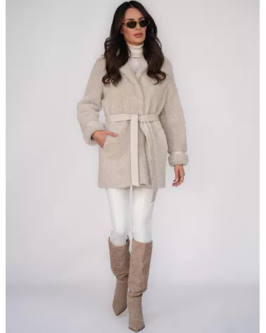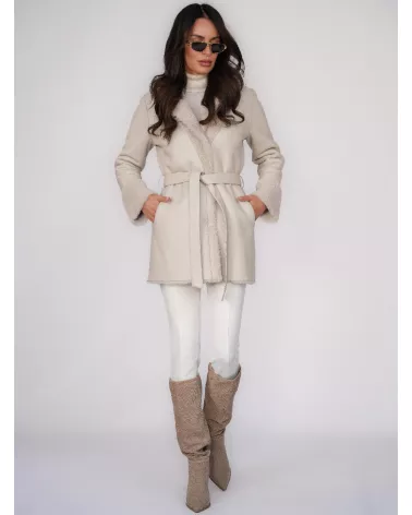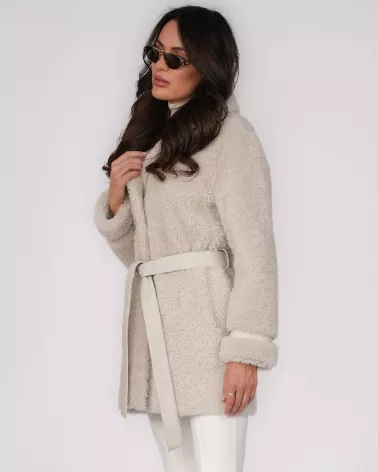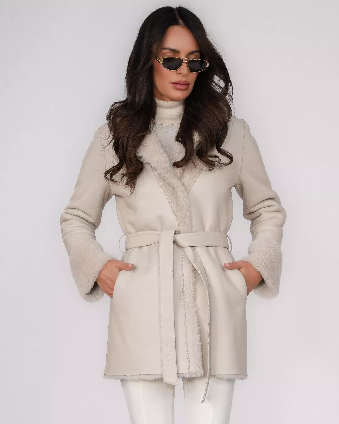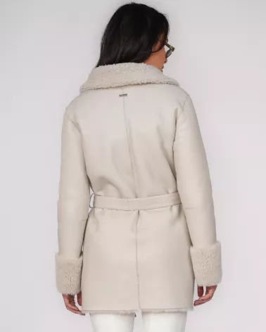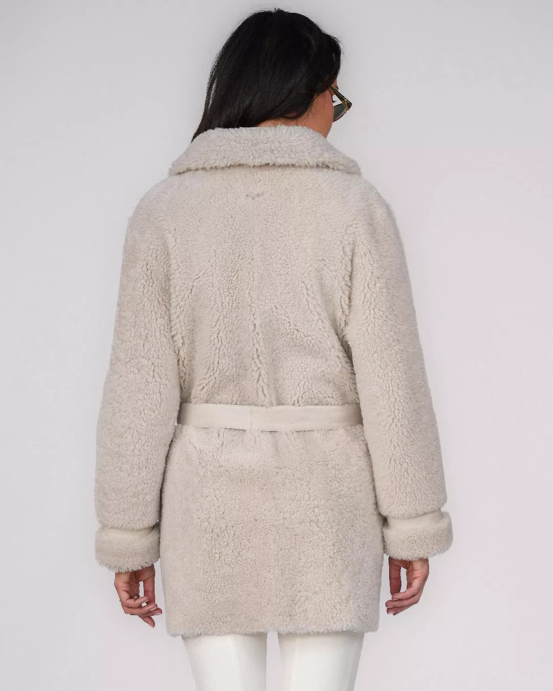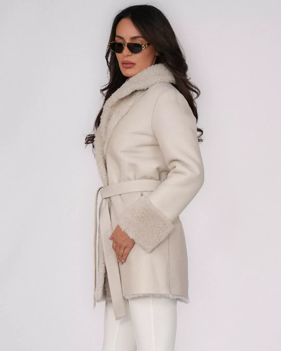 Doppelseitiger elfenbeinfarbener Schaffellmantel