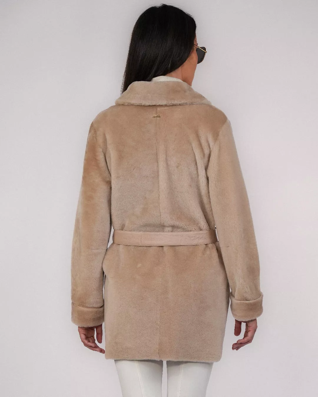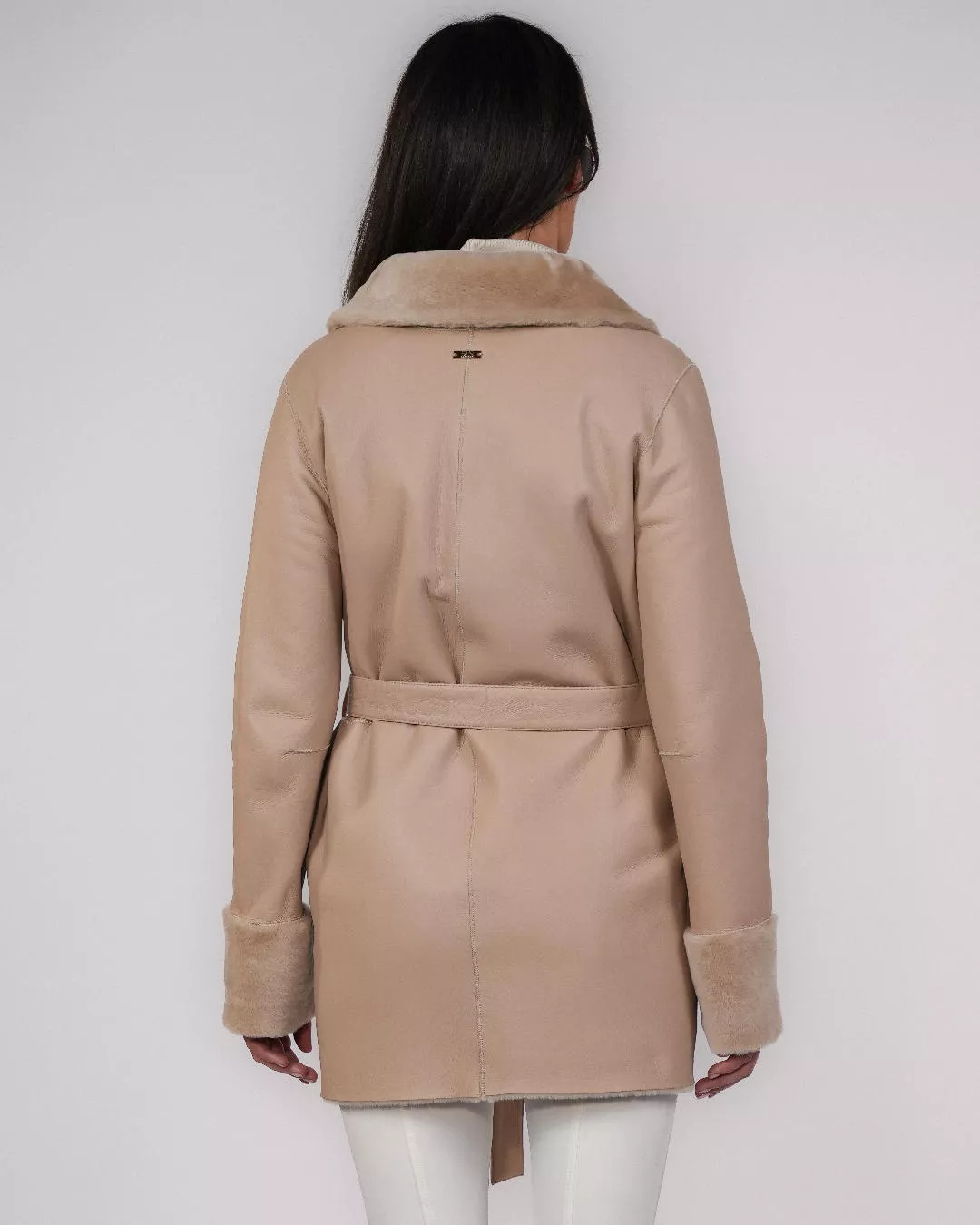 Dieser elegante und zeitlose, wendbare Lammfellmantel ist aus feinstem Merinoleder gefertigt. Er vereint klassische Form mit moderner Funktionalität und bietet zwei Tragemöglichkeiten – je nach Stil und Anlass. Die natürliche Sandfarbe harmoniert perfekt mit minimalistischen und eleganten Outfits, sowohl leger als auch formell.