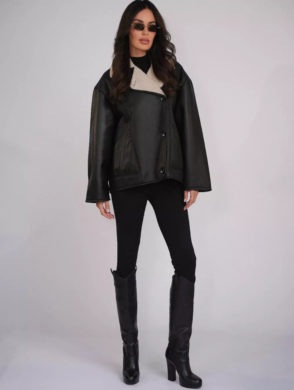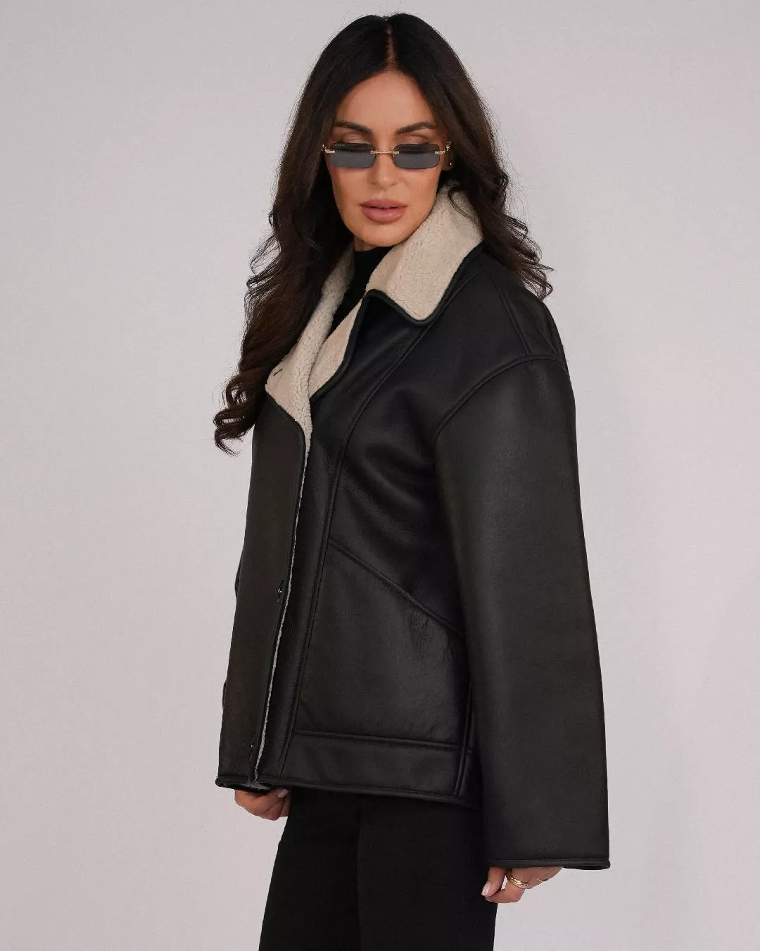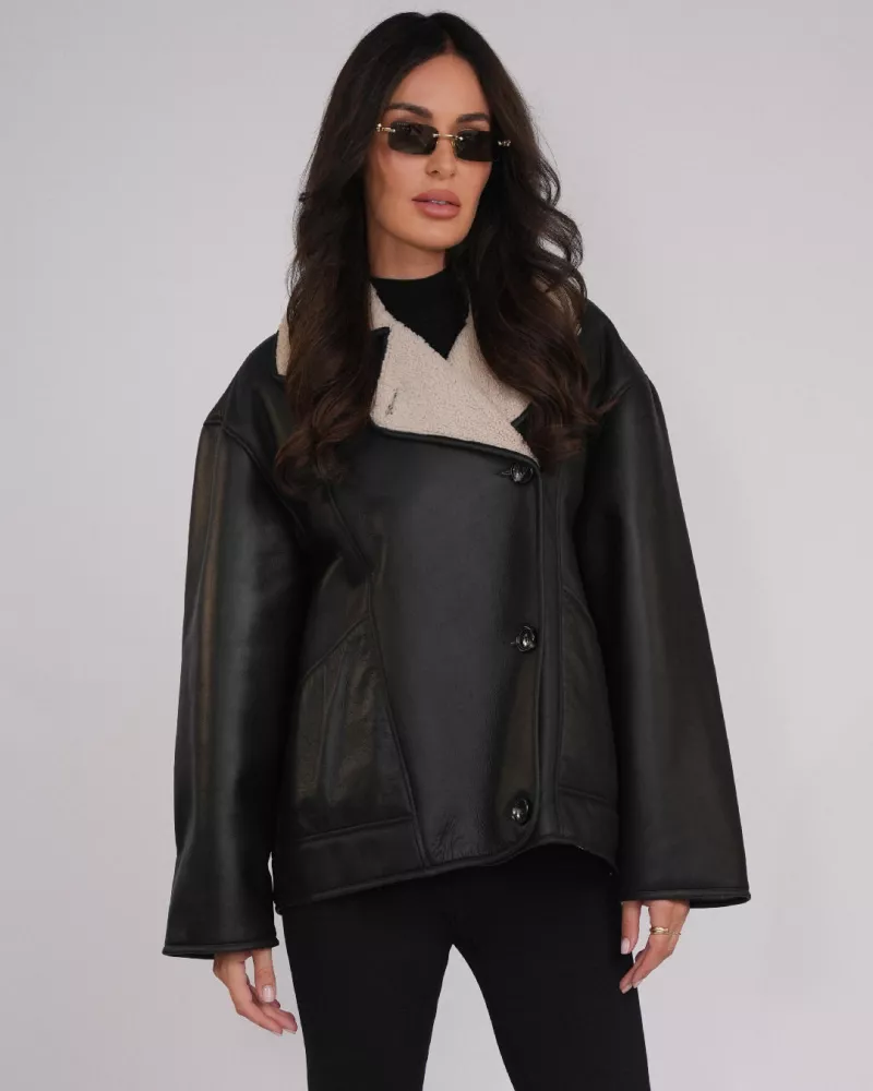 Ein stilvoller und zeitloser Lammfellmantel aus hochwertigem 100% Merinoleder, der Eleganz und Funktionalität vereint. Das modische Oversized-Design bietet hohen Tragekomfort und eignet sich perfekt für Alltags- und festliche Anlässe.