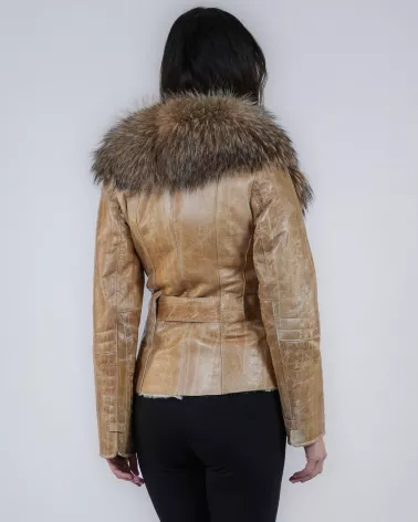 - materiał główny: 100% skóra merino; kołnierz: 100% futro z jenota