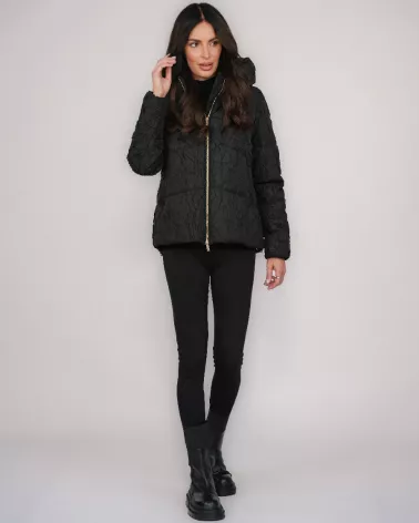 Schwarze, isolierte Daunenjacke mit Kapuze – perfekt für kalte Tage