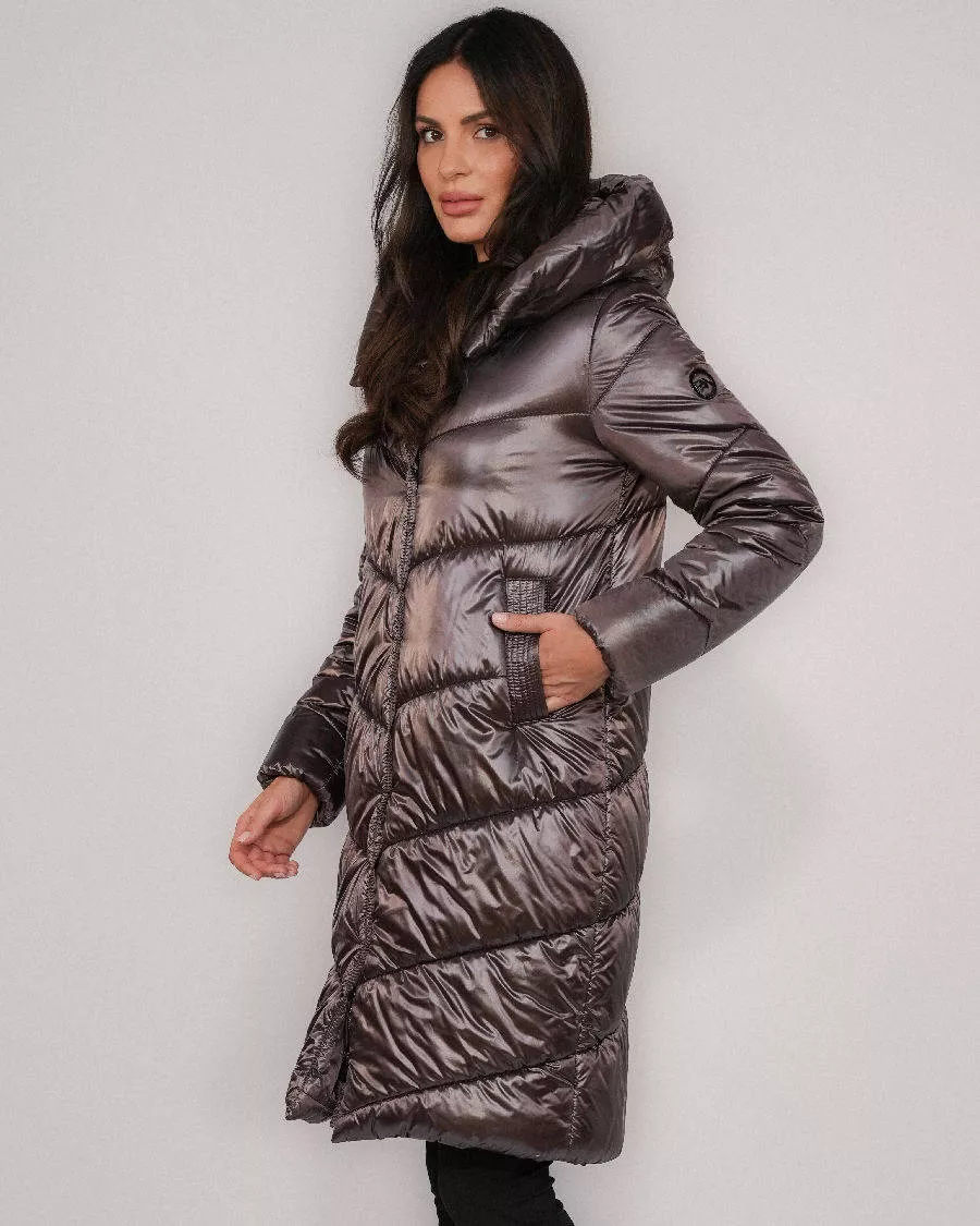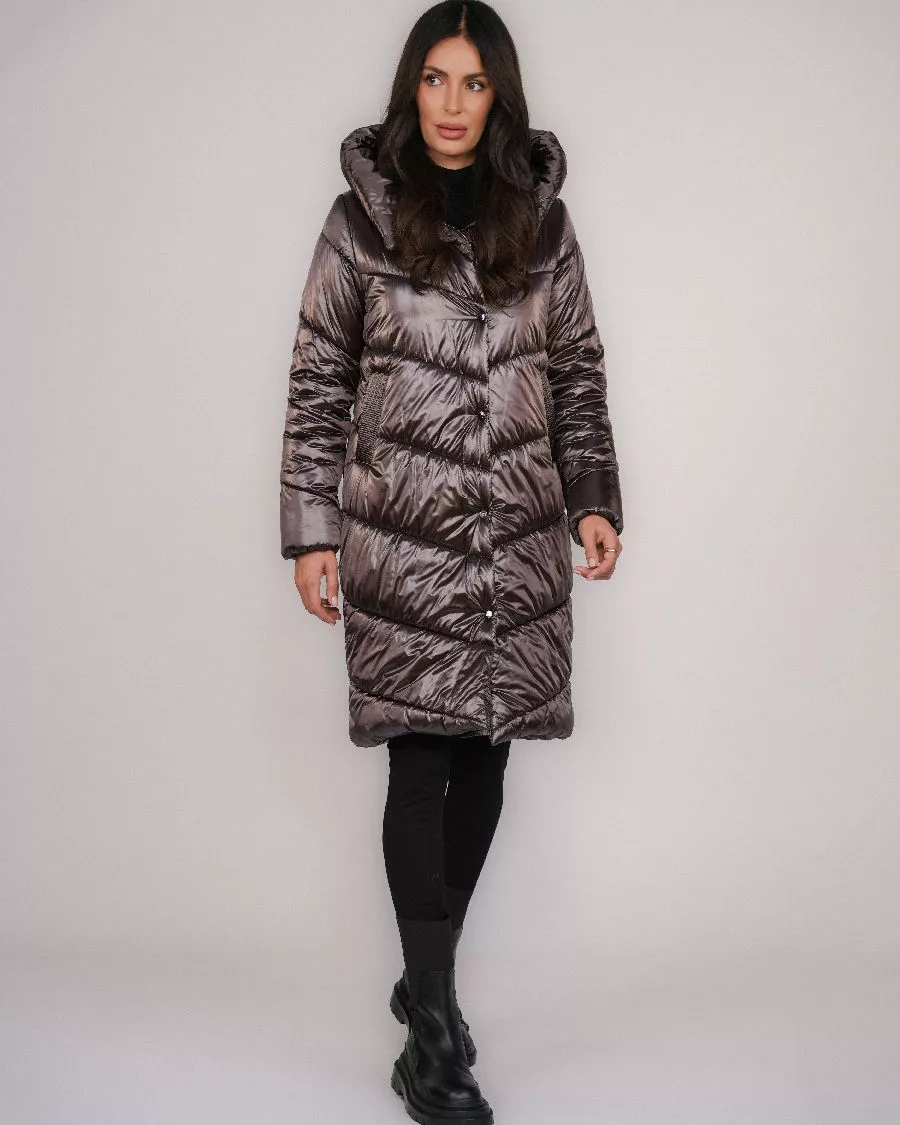 Lange Daunenjacke mit Kapuze – Braun