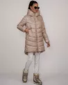 Diese 100 cm lange, isolierte Daunenjacke in Camel ist die perfekte Wahl für kalte Tage. Ihr modernes Design zeichnet sich durch eine etwas längere Rückenpartie und eine großzügige Kapuze aus, die hervorragenden Schutz vor Wind und Kälte bietet.