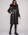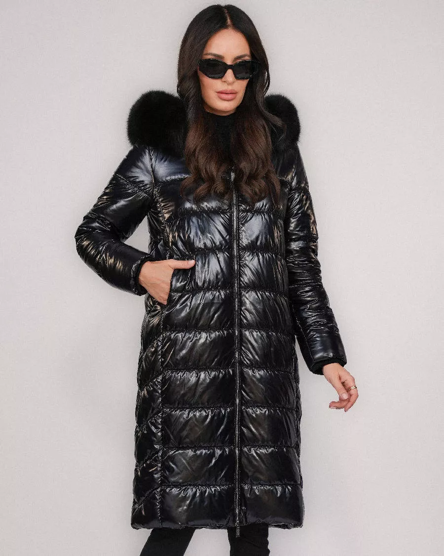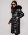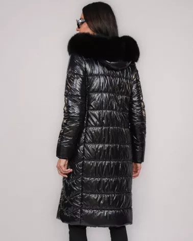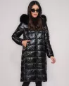 Schwarze Daunenjacke mit echtem Fuchspelz