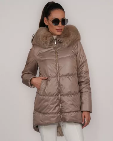 ● Kapuze mit natürlichem Fuchspelz – abnehmbarer Besatz