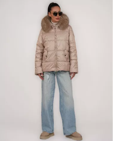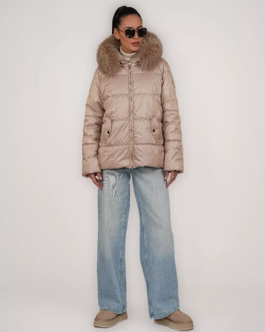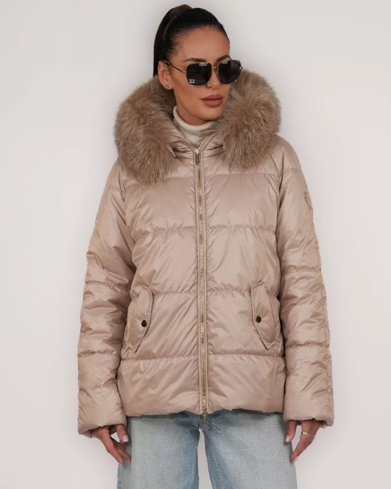 Daunenjacke mit natürlichem Fuchspelz – Camel