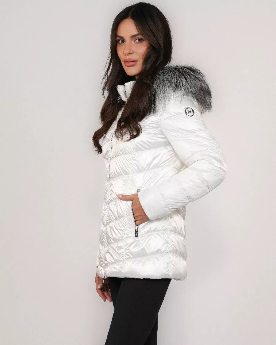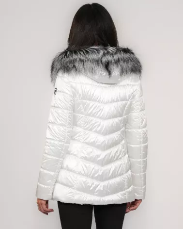 Weiße Daunenjacke mit natürlichem Fuchspelz