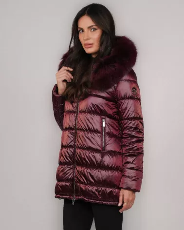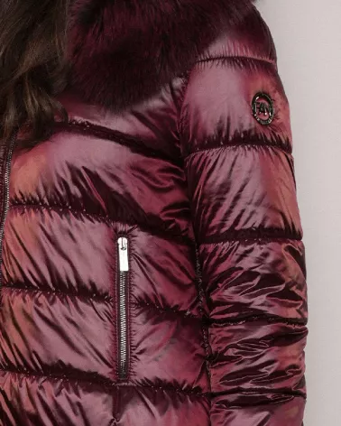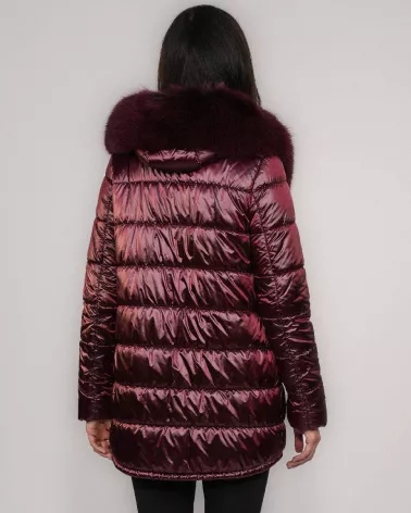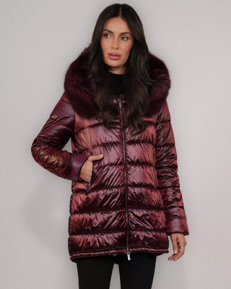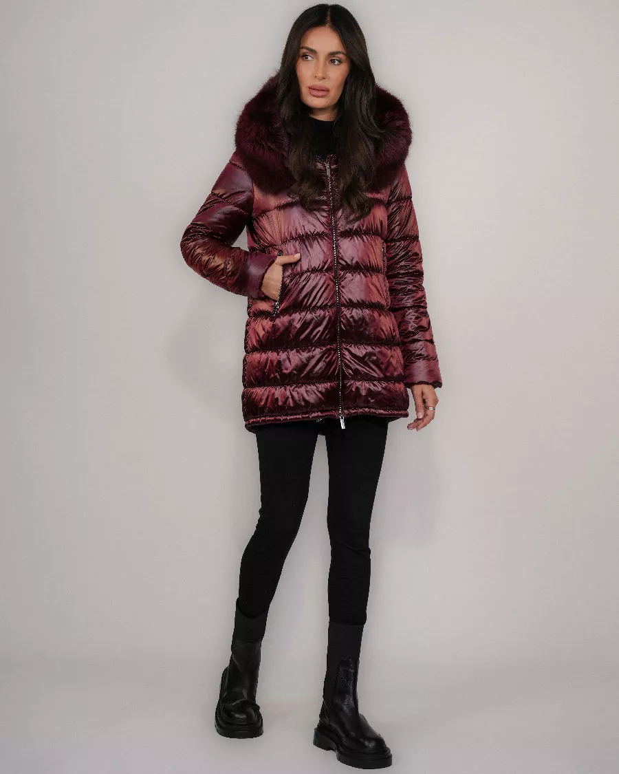Daunenjacke mit natürlichem Fuchspelz – Burgunderrot