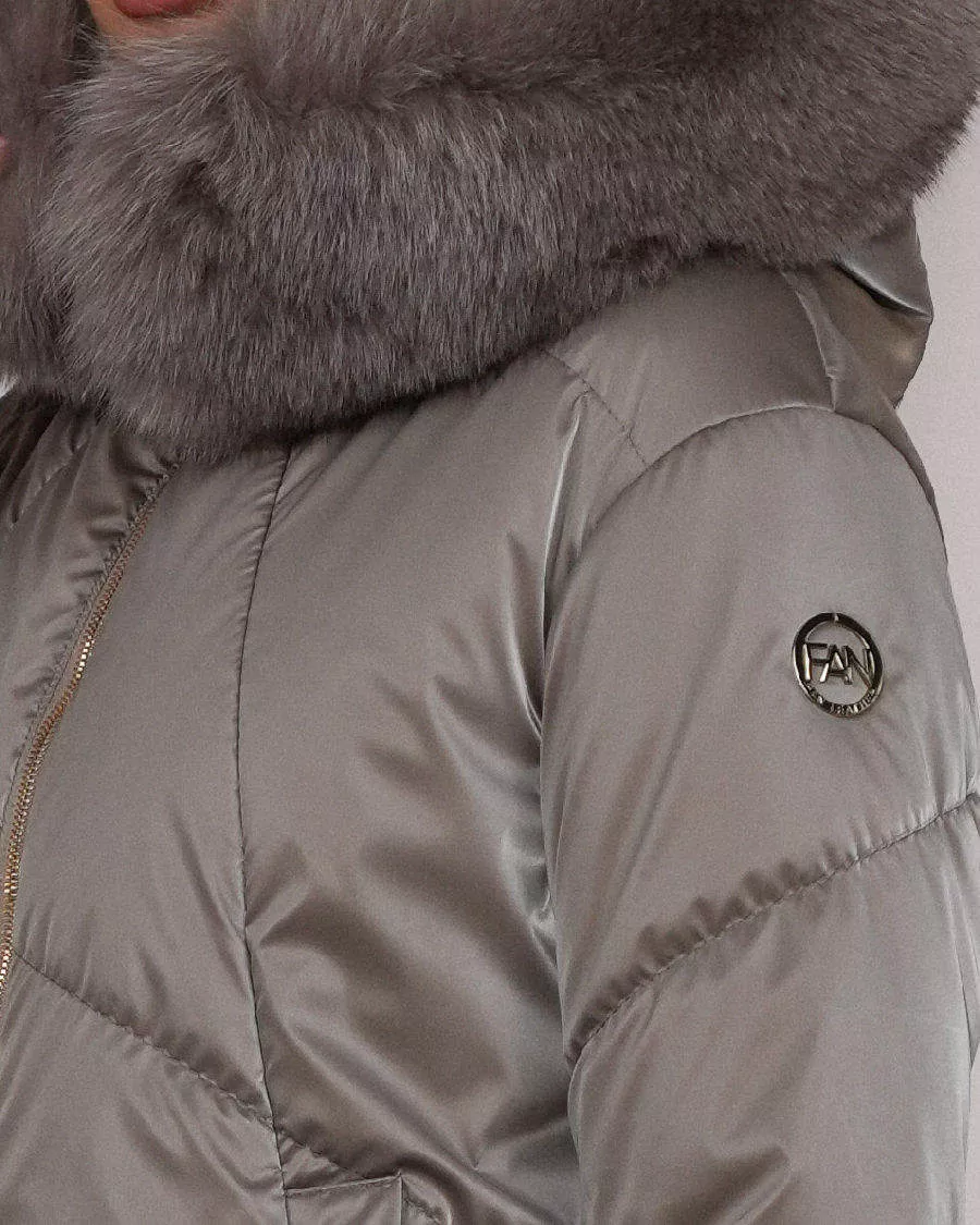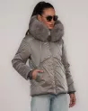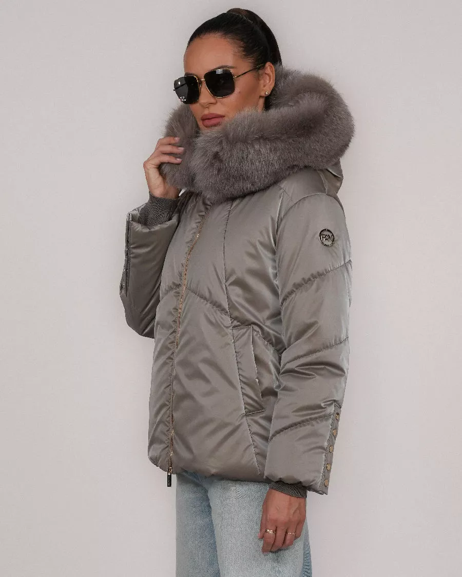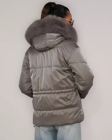 Wasserdichte Daunenjacke mit echtem Fuchspelz – Taupe