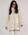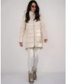 Diese stilvolle und funktionelle Damen-Daunenjacke in elegantem Vanille-Ton ist perfekt für kältere Tage und vereint modisches Design mit hervorragendem Wärmeschutz. Ihre Länge (90 cm) schützt effektiv vor Kälte, während das leicht schimmernde Material einen Hauch von Luxus verleiht.