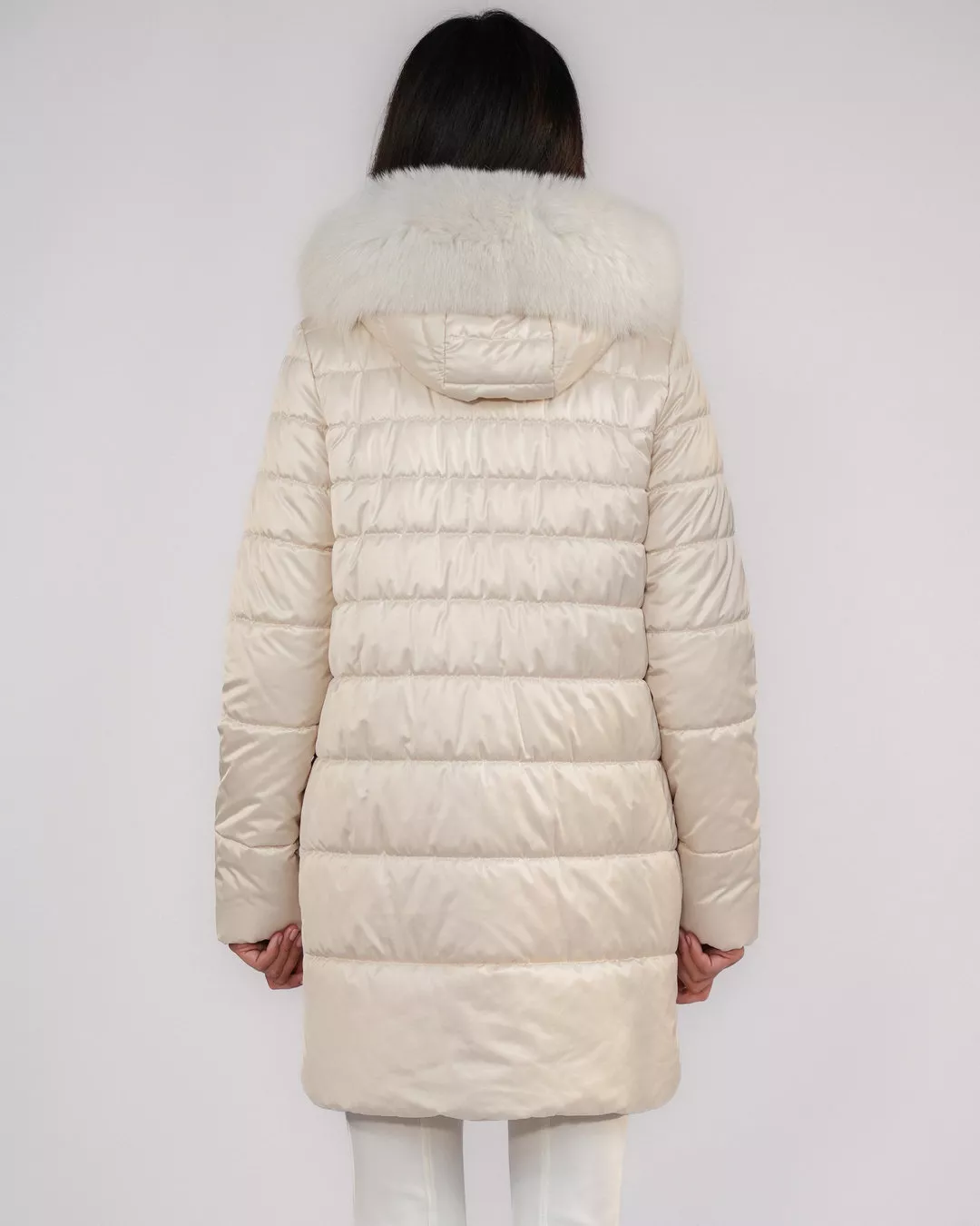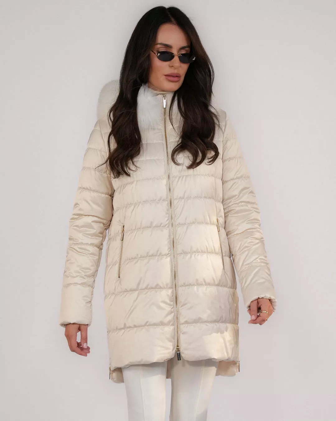 ● Abnehmbare Kapuze mit natürlichem Fuchsfellbesatz
