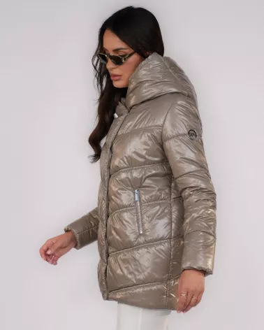 Taupefarbene Daunenjacke mit Kapuze