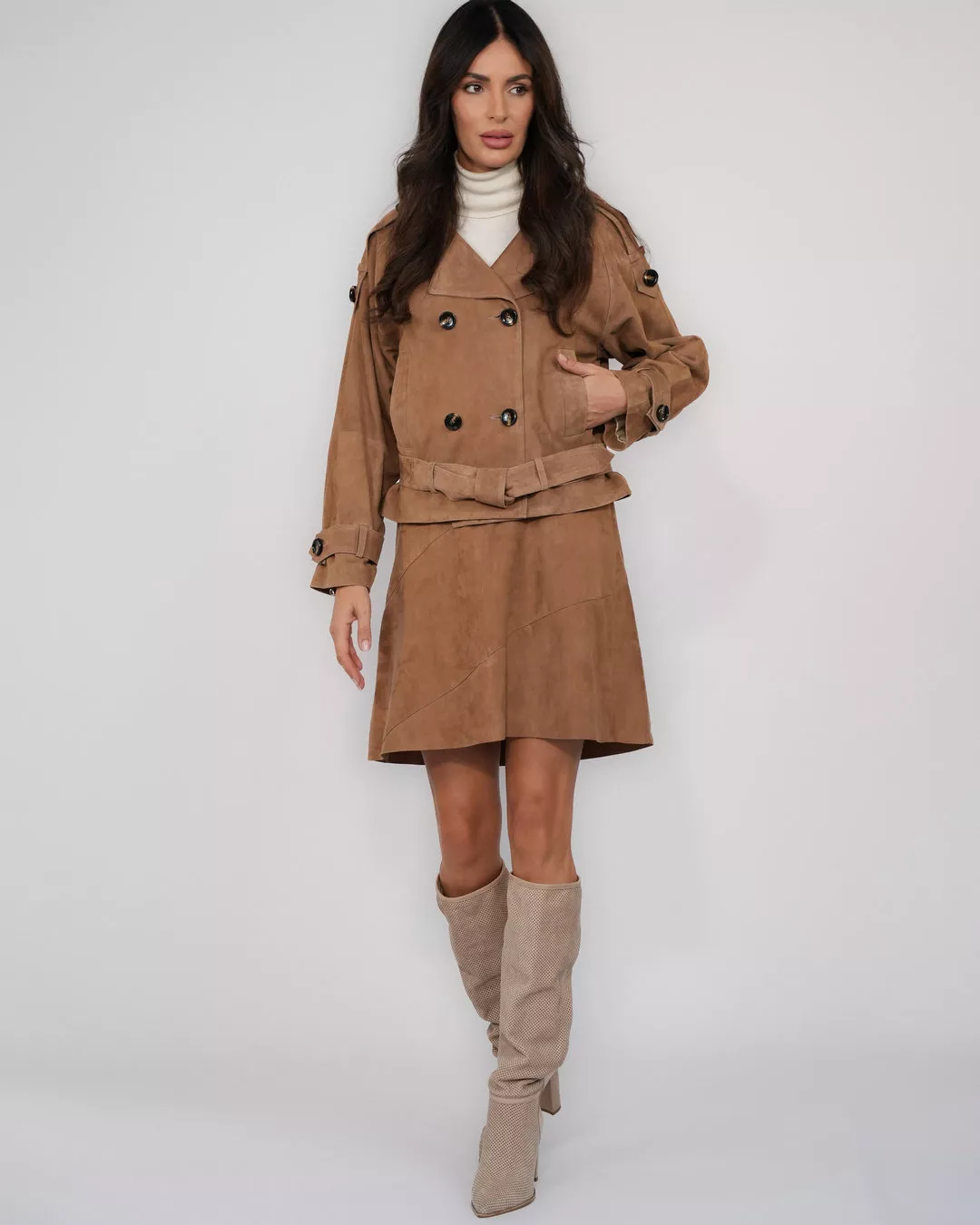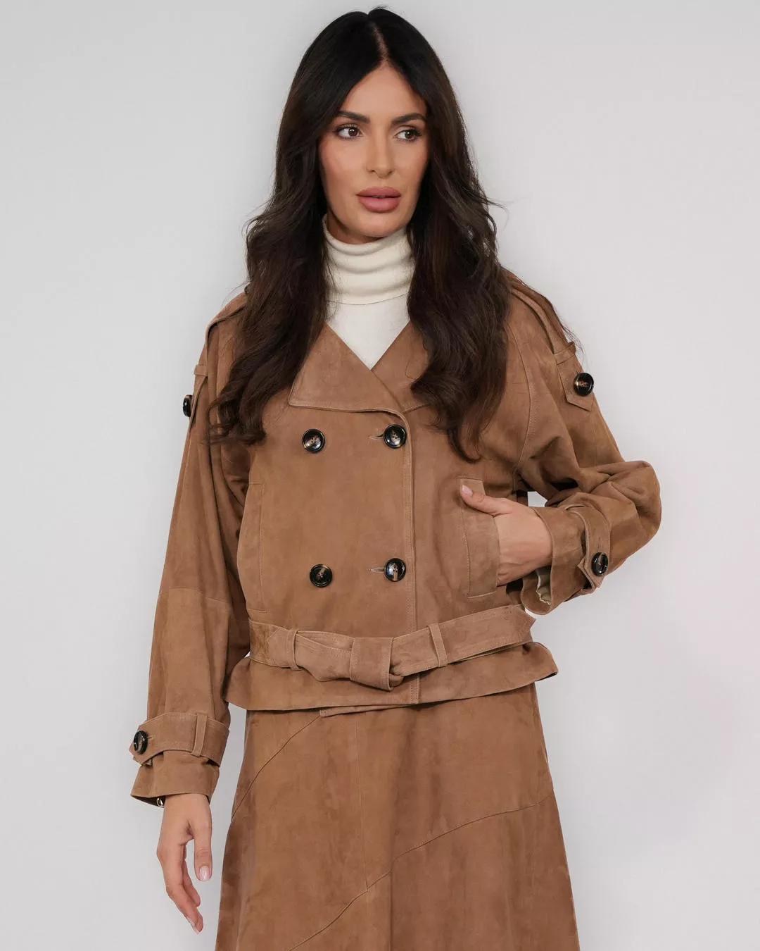 Wildlederjacke mit separatem Tabakgürtel