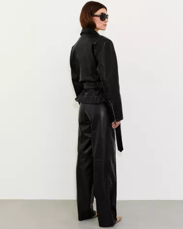 Schwarze Lederjacke mit separatem Gürtel