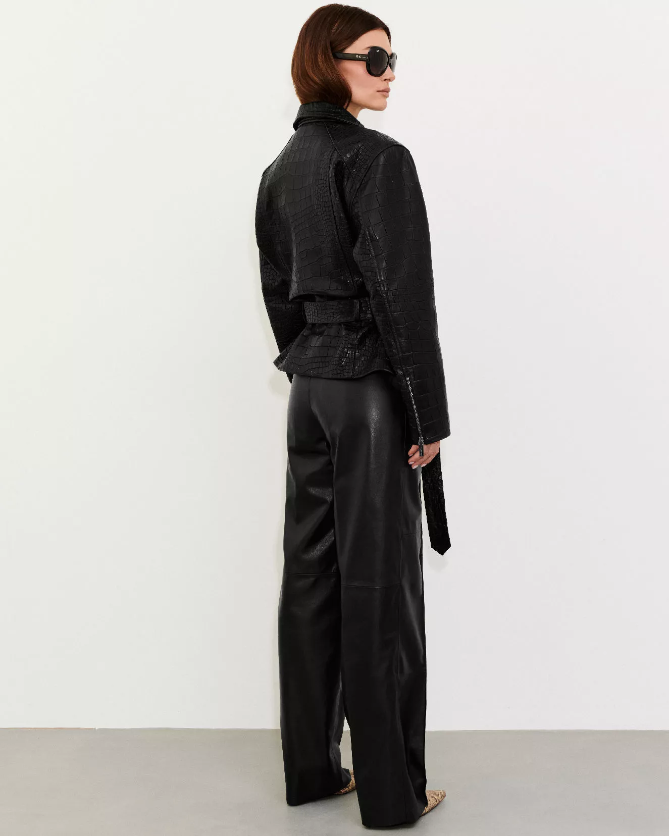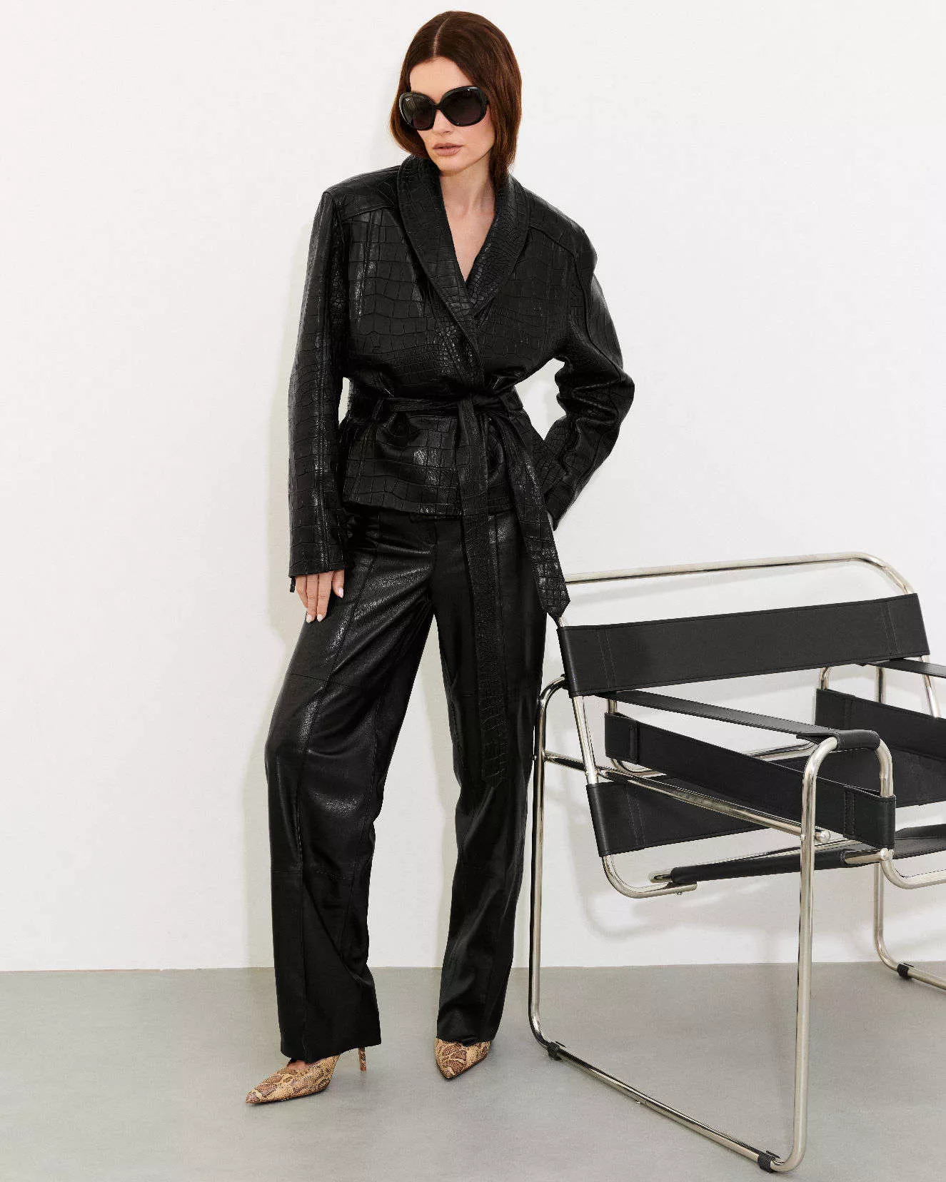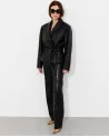 Schwarze Oversize-Lederjacke mit Gürtel – Moderne Eleganz