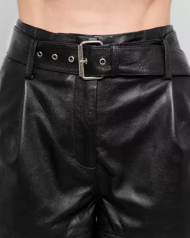 Schwarze Ledershorts mit Gürtel – Eleganz und Charakter