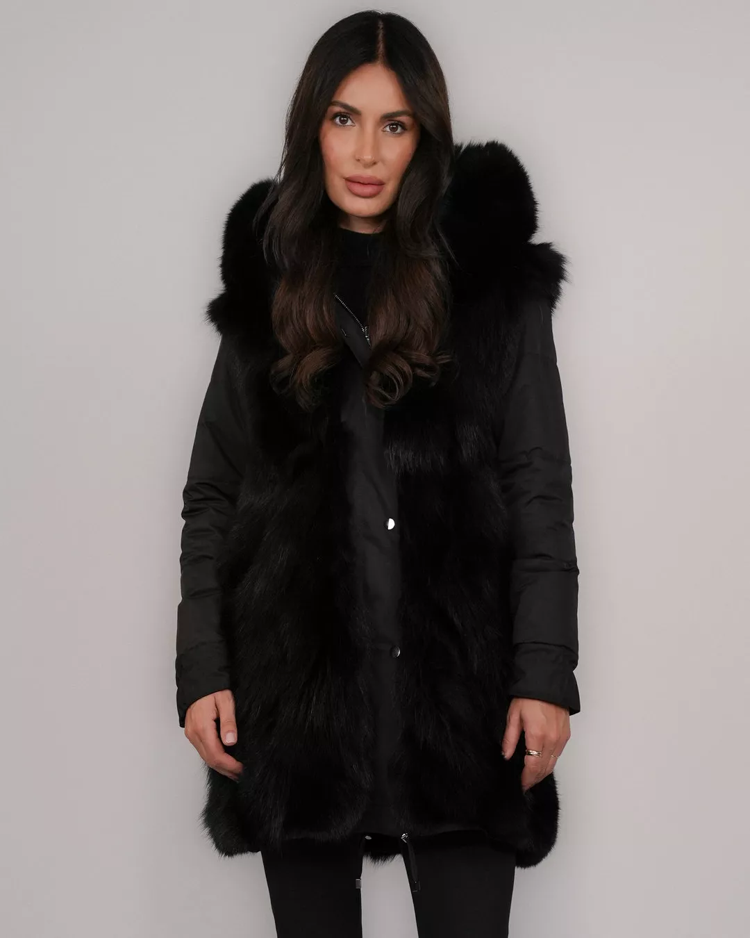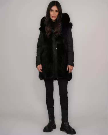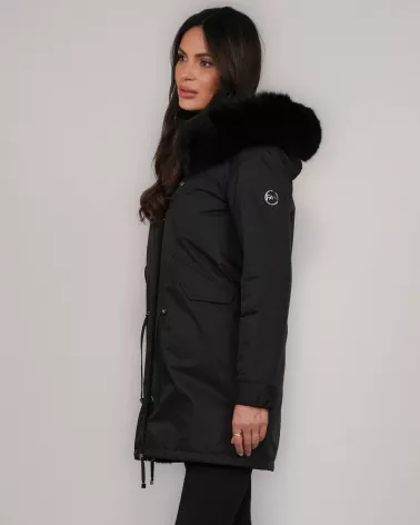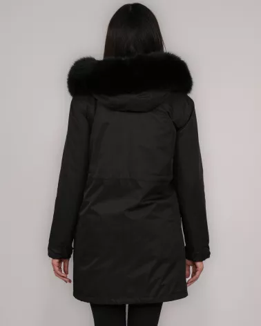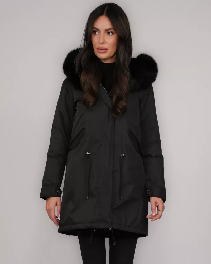 Wasserdichter Wendeparka mit Echtfuchsfell – Schwarz