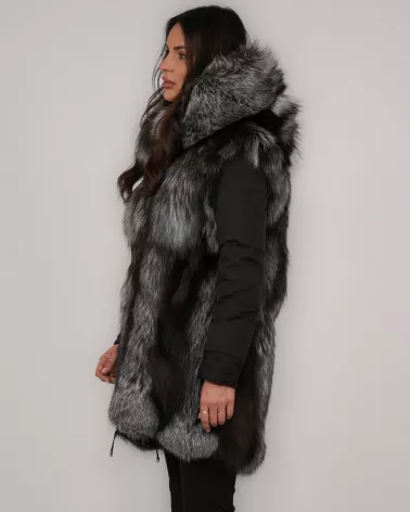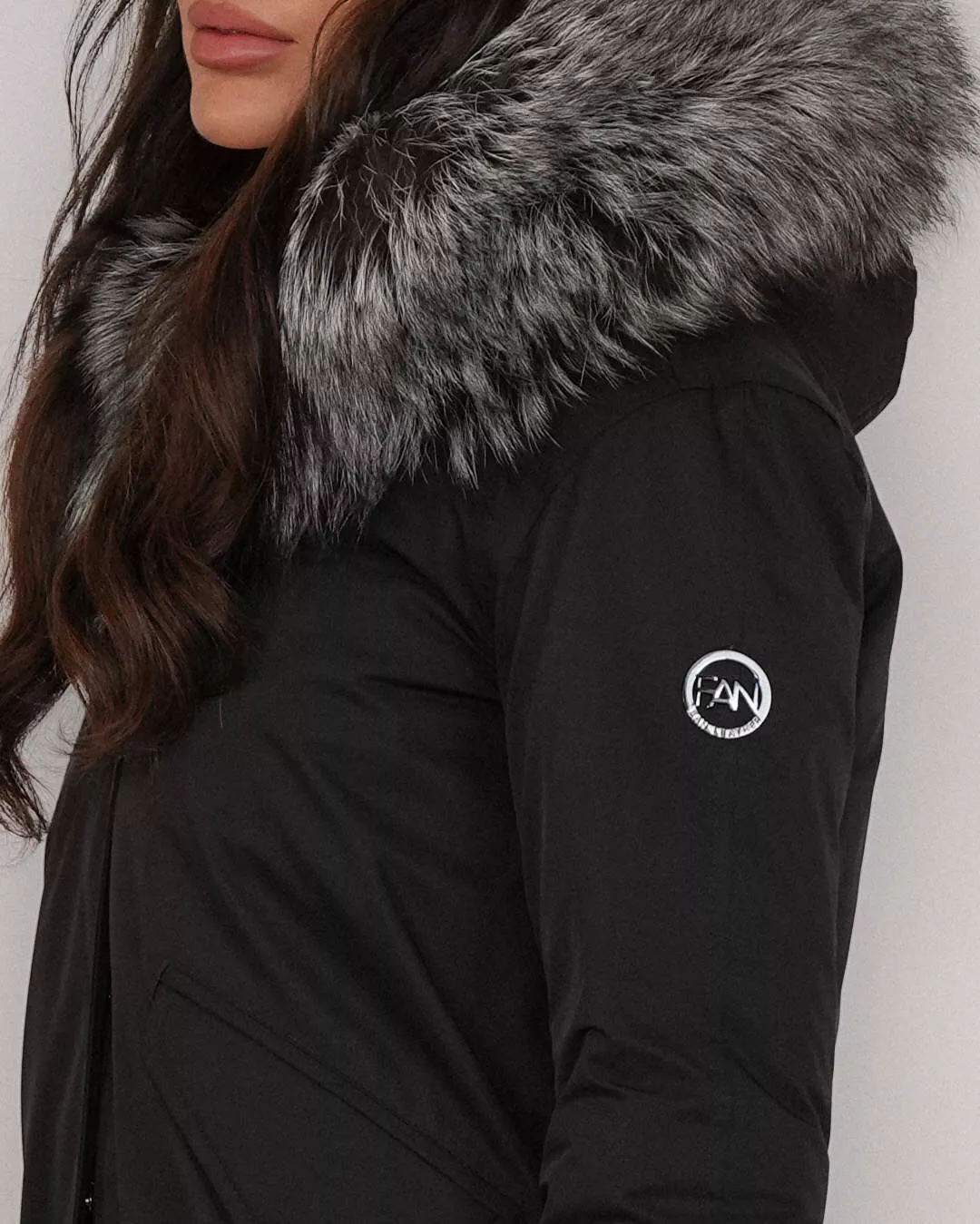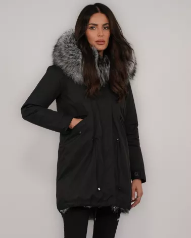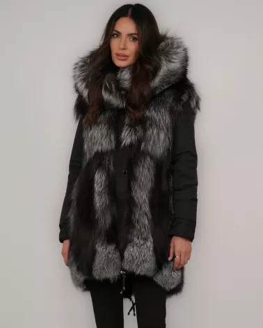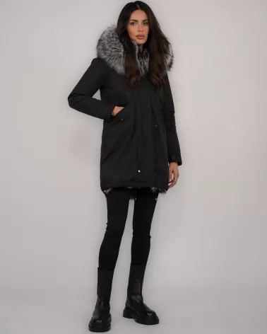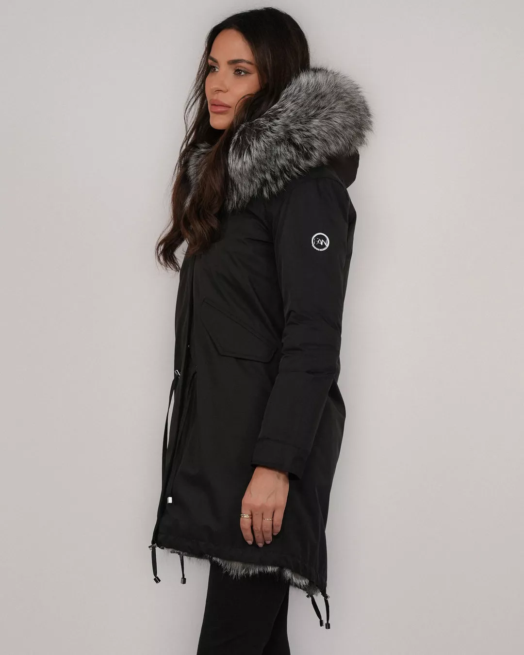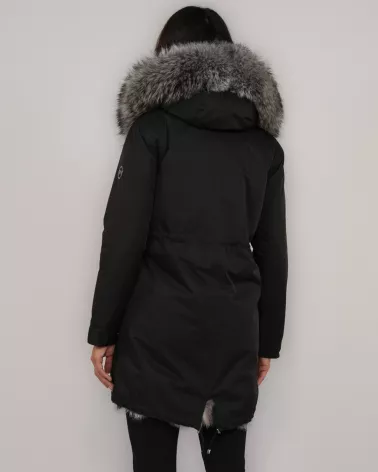 Wendbarer Damenparka mit Echtfuchsfell – Schwarz