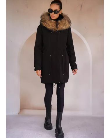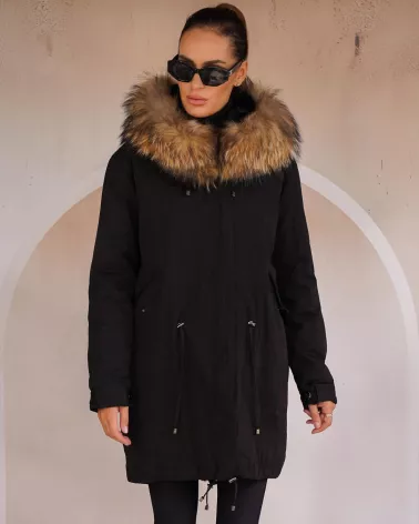 Schwarzer Parka mit Pelzkapuze – Eleganz und Komfort für den Winter