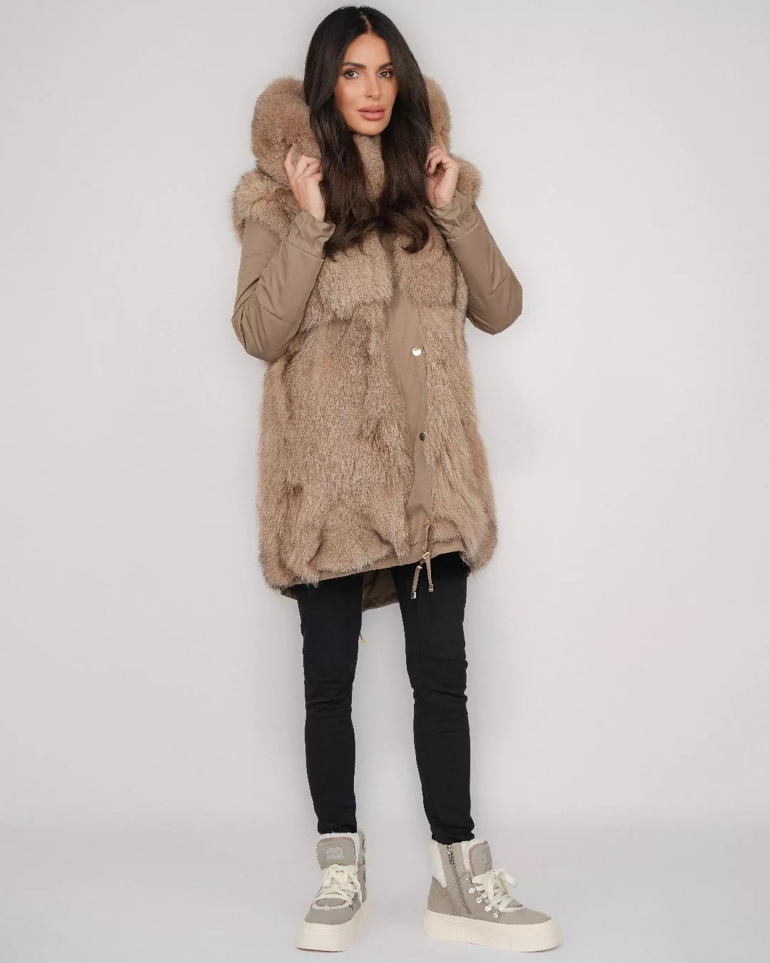 ● Kapuze: Mit natürlichem Fuchsfell besetzt
