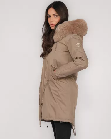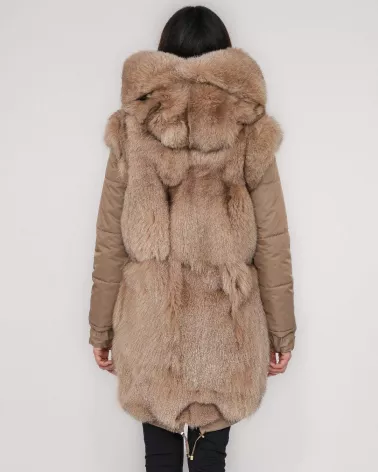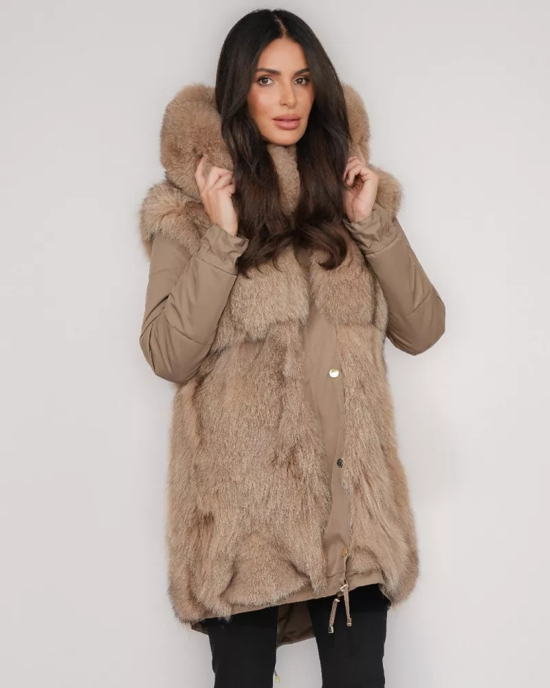 Dieser elegante und funktionelle Parka in Kamel vereint modernes Design mit luxuriösen Details. Das Wendemodell bietet auf der einen Seite einen klassischen, wasserdichten Parka und auf der anderen Seite eine markante Version mit Echtfuchsfell – perfekt für kühlere Tage. Dieses Kleidungsstück ist ideal für Frauen, die Wert auf Stil, Komfort und höchste Verarbeitungsqualität legen.