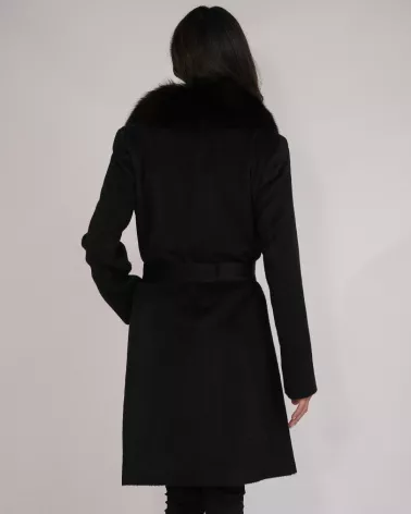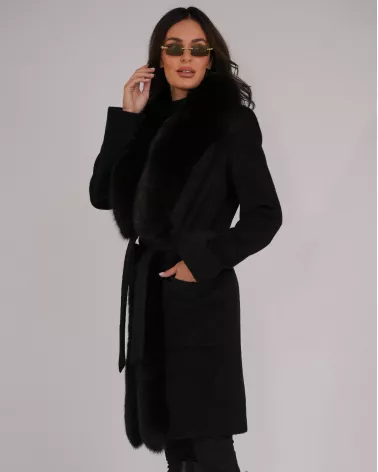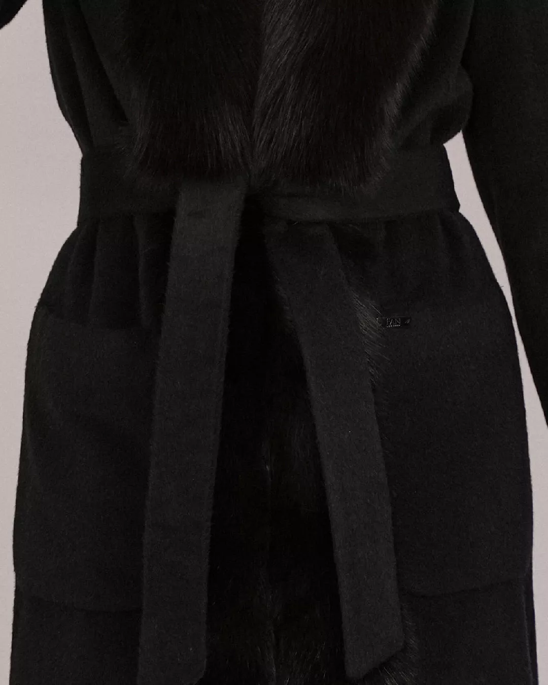 Alpakamantel mit Fuchspelzbesatz – Schwarz
