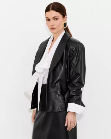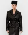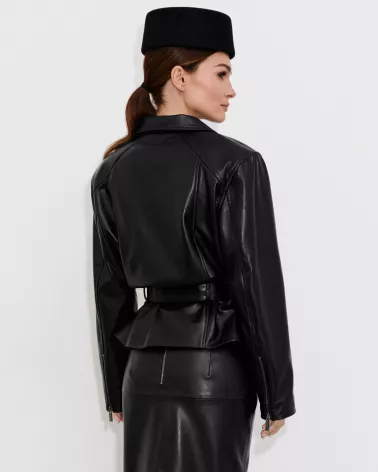 Schwarze Lederjacke mit separatem Gürtel
